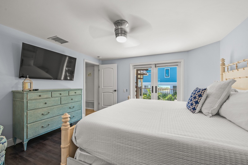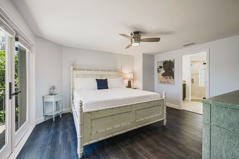 Primary Bedroom, 2nd floor: King bed, private balcony, ensuite with walk-in shower