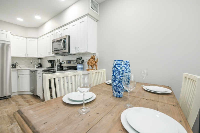 Inside is everything you need to have a fun and rejuvenating vacation. There is a fully equipped kitchen with stainless steel appliances and ample seating for all your guests, including a rustic style kitchen table and bartop seating. On the covered patio by the pool, you'll find a picnic-style table, a bar with an outdoor TV, and a BBQ grill.