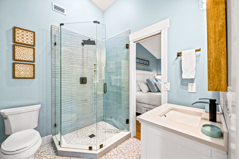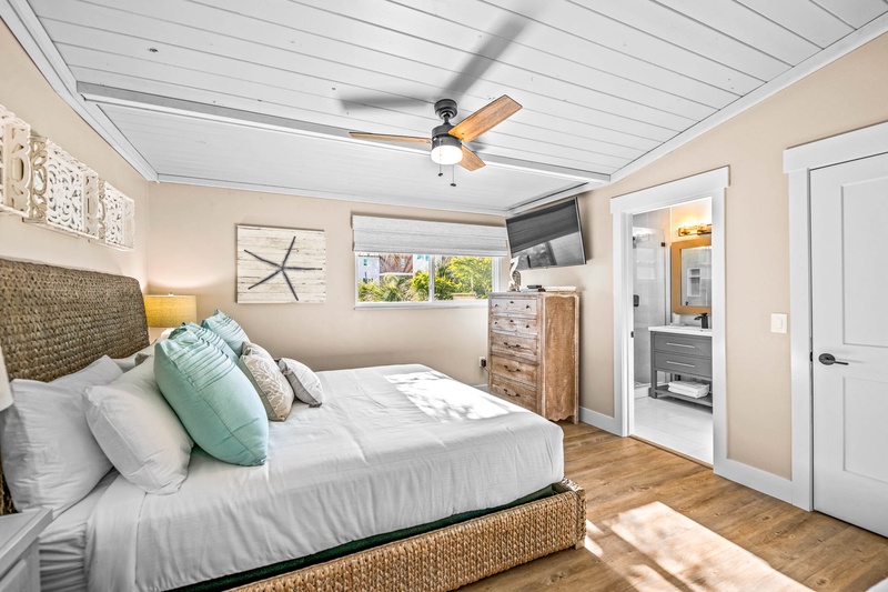 -Second Bedroom, 2nd floor: King bed and ensuite bathroom with walk-in shower