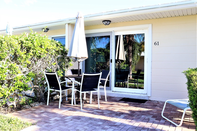 Guests enjoy access to community amenities including outdoor showers, shuffleboard, two BBQ areas, a community patio, and beautifully maintained grounds. Local restaurants, grocery stores, tennis courts, and the Siesta Beach public pavilion are all within a short walk or trolley ride.