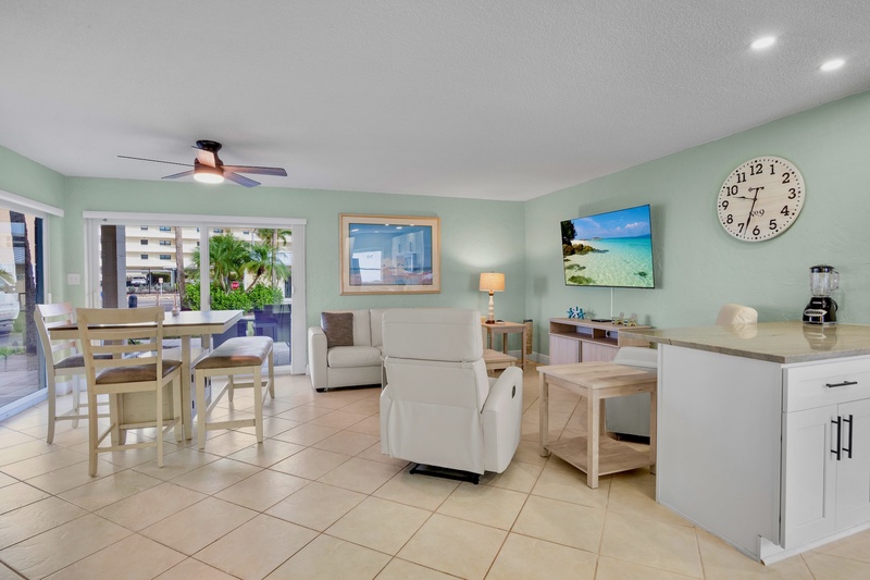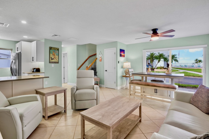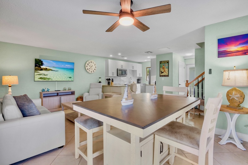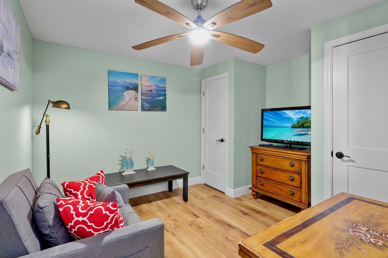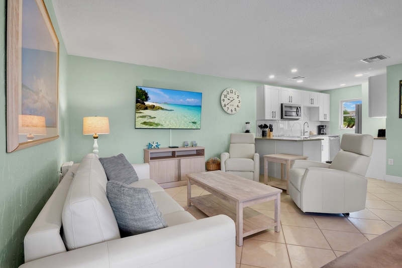 • Living Room (Main Level): Queen sleeper sofa, access to full guest bath