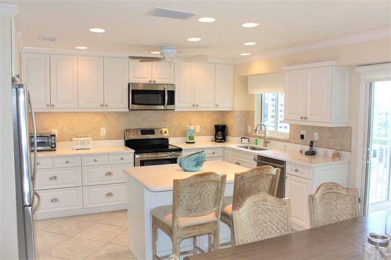 Gulf views from the living room, dining room, kitchen and master bedroom. Private, secure Wi-Fi Internet connection, FIOS televisions, and landline phone provided. The condo has a large open balcony area. This large open balcony is rare for the area, most are screened in and small. The balcony has two areas for sunbathing and a large area with glass sliders for cool days or nights. You can enjoy the sun and views on the balcony outside your bedroom or off of the dining room. There is an outdoor dining table to enjoy your morning coffee or a have a romantic dinner while watching the sunset. Sit on the large balcony and enjoy the views and listen to the waves. The kitchen is fully equipped and has bar area seating for two. It is open to the dining room with seating for six. The living room has a sleeper sectional and two swivel chairs with ottomans and large flat screen TV. The spacious master en suite has a king size bed, flat screen TV, and desk. The master bathroom has a walk-in tiled shower. The guest room has two full-size beds, TV, and large closet area. The guest bathroom has a tub/tiled shower combo. After having fun in the sun, swim in any of our three heated, fresh-water pools, cook up lunch or dinner at our barbeque area and play shuffleboard. We are just minutes from the tennis courts at the public beach (only 1/2 mile north from Jamaica Royale to Siesta Key public beach). Pool #3 is located just around the corner from the elevator! Our designated parking spot is conveniently located just steps to the elevator. There are beach toys, chairs, umbrellas, etc. for your convenience. Jamaica Royale also has lounge chairs located in the private beach area in front of our building exclusively for our JR guests. This unit has a 7 night minimum Saturday to Saturday rental policy, but can be booked for less to fill gaps. We will do our best to accommodate any request.