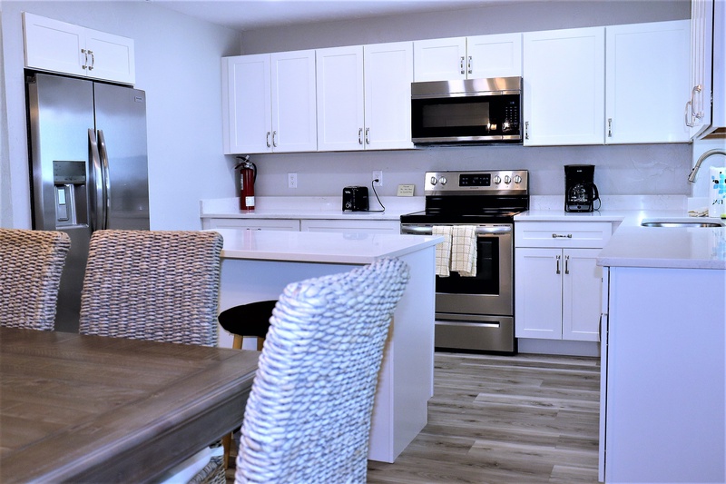 Step into the airy living room, where comfortable seating awaits, allowing you to relax while spotting dolphins in the Gulf. The glass-enclosed balcony provides a seamless connection to the outdoors, perfect for enjoying meals with stunning views. The kitchen features sleek stainless steel appliances, making meal prep a breeze, while the contemporary dining table is great for sharing fun moments with family and friends.