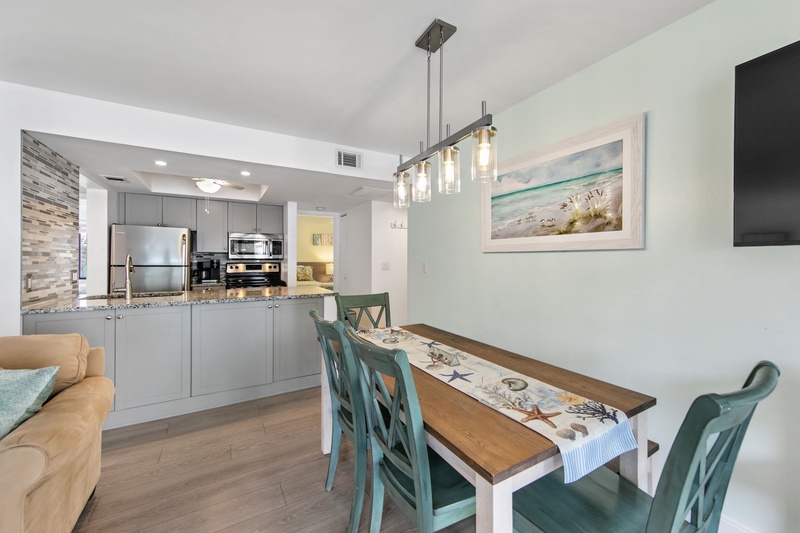 Inside, you'll find a bright and inviting living area complemented by tropical decor, a fully equipped kitchen with modern appliances, and a cozy dining area perfect for family meals. The primary bedroom includes a king bed and a private ensuite bathroom, while the second bedroom features a queen bed, ensuring ample comfort for everyone.