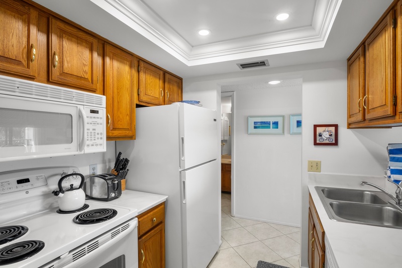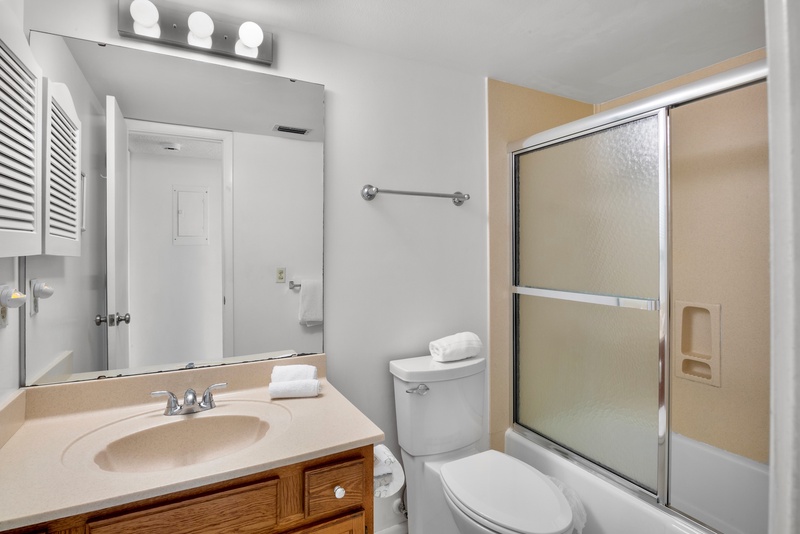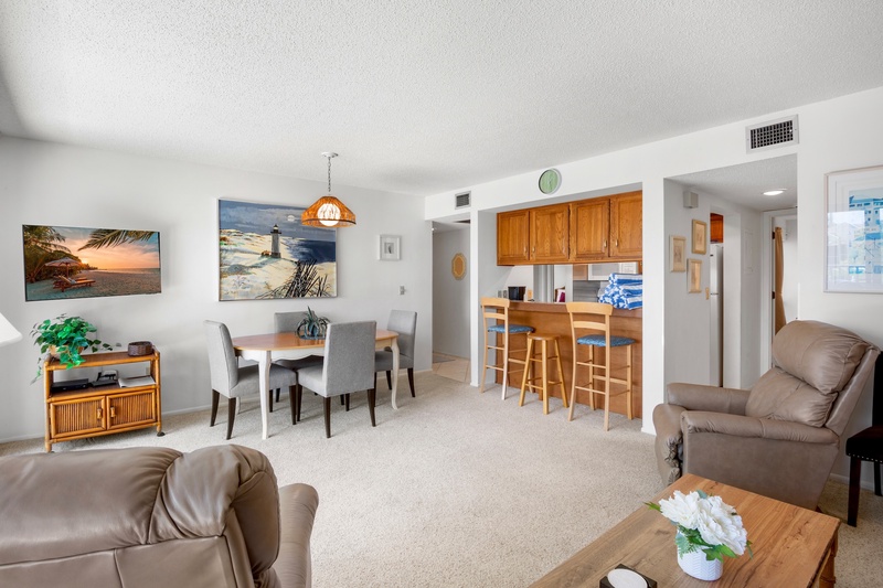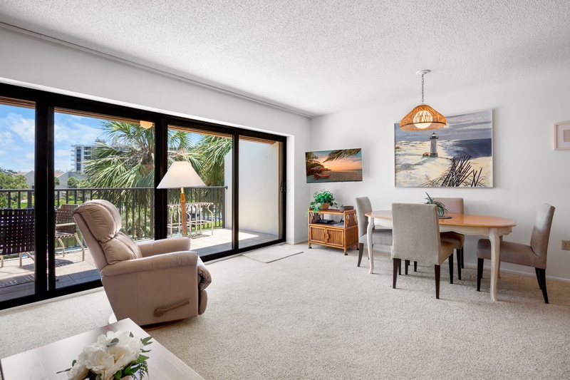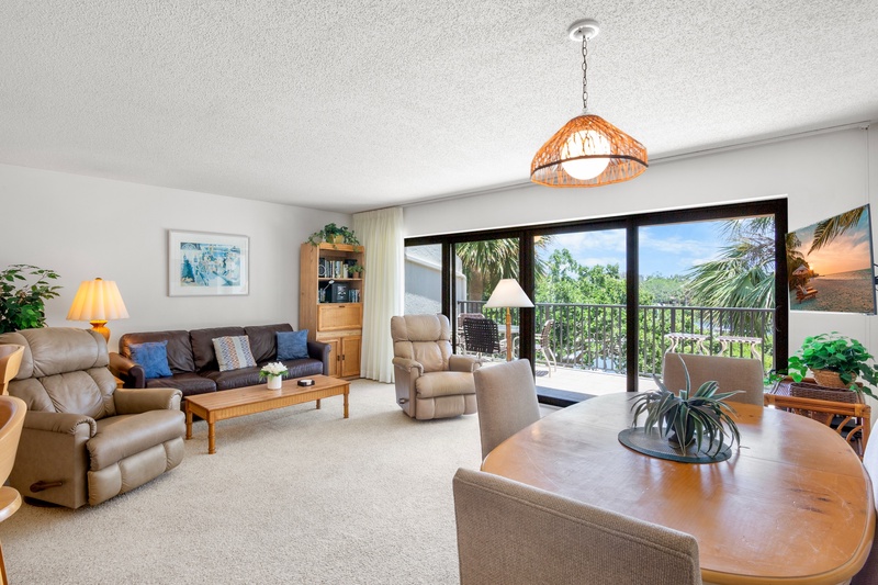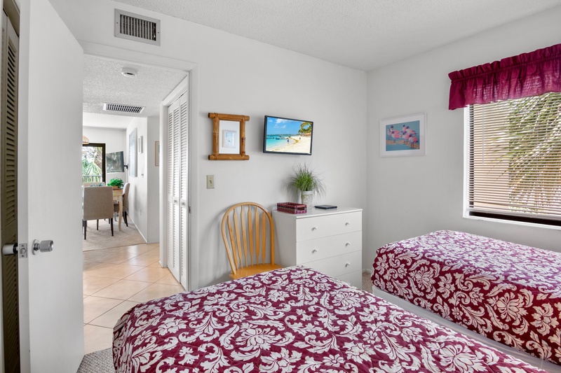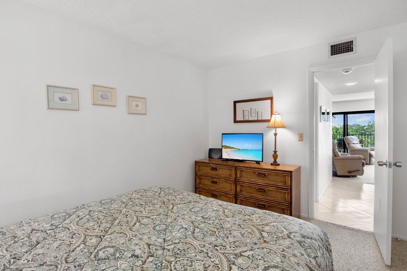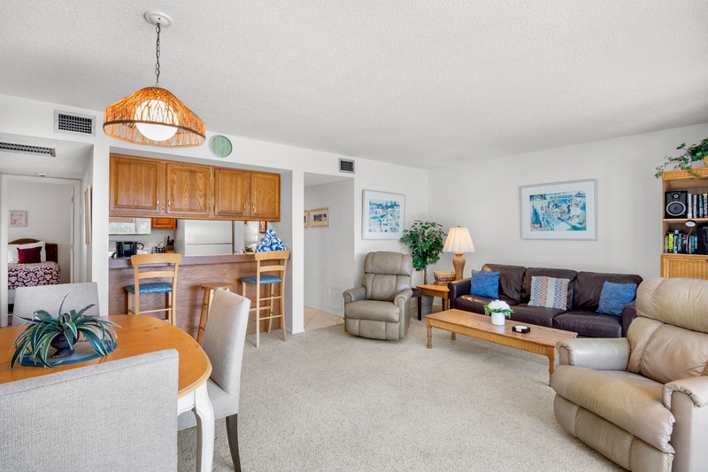 This lovely third-floor end unit condo offers stunning views from the balcony, making it an ideal spot for relaxation. The interior features a primary bedroom with a comfortable queen bed and a guest bedroom with two twin beds, perfect for accommodating family or friends. All rooms are designed for ease and comfort, ensuring a pleasant stay.