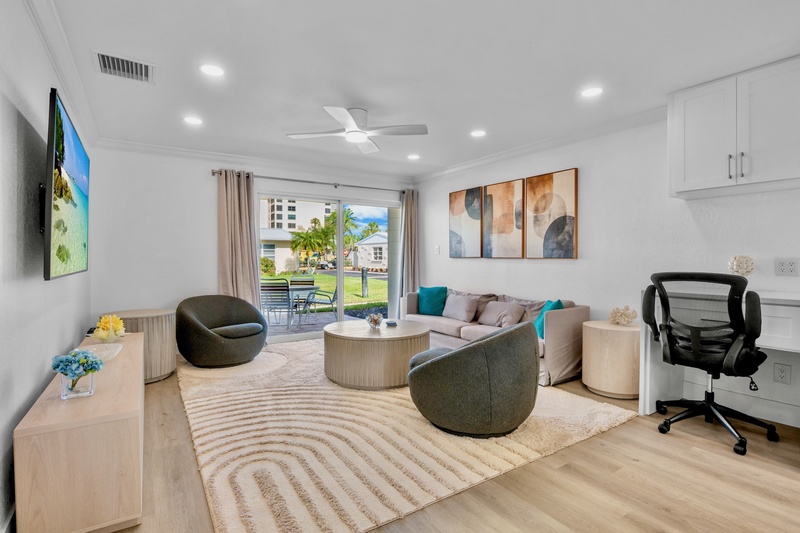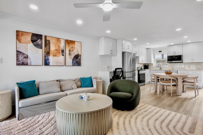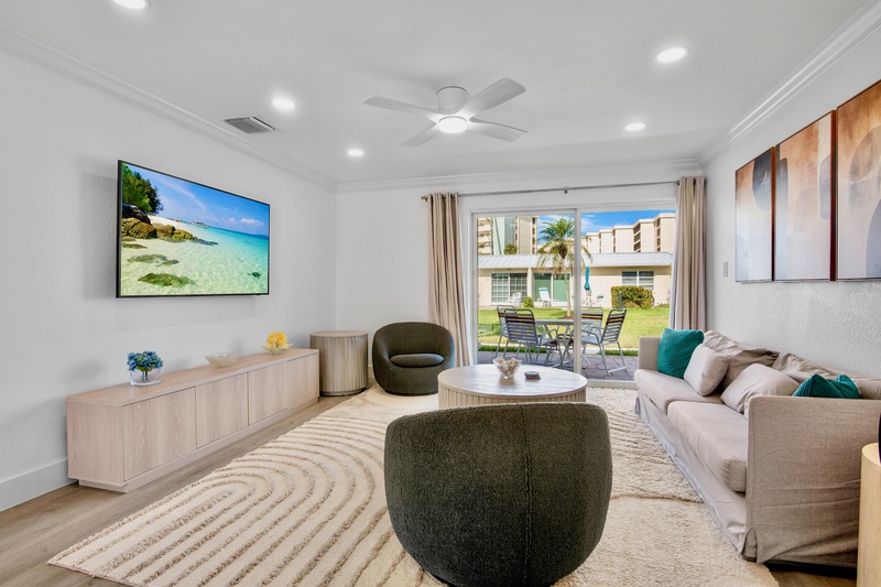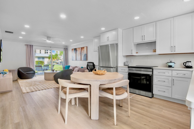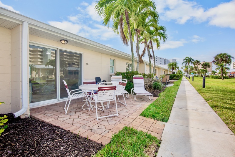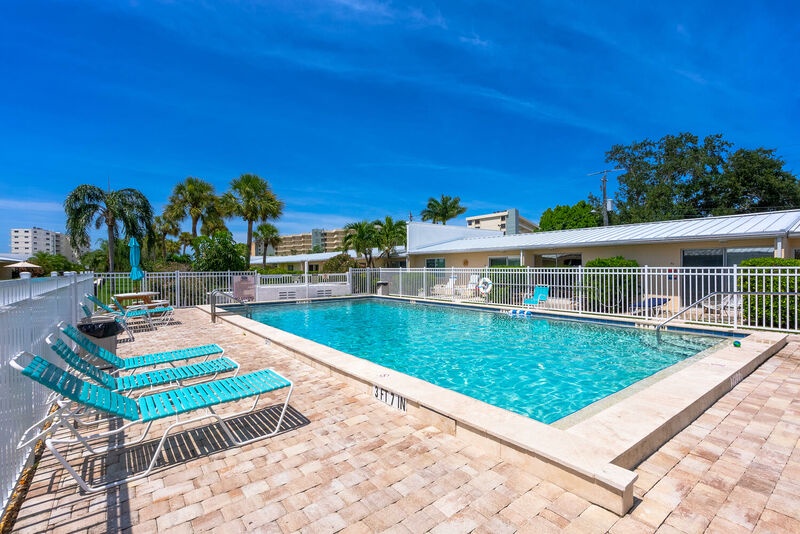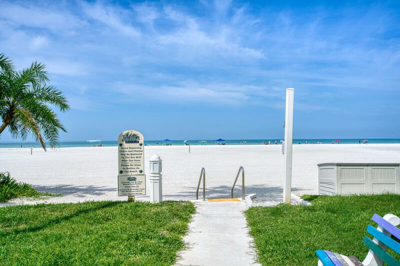 Beautifully updated garden villa, steps away from Jamaica Royale's private beach on the white sands of world-famous Siesta Key Beach. This gem features a large dine-in kitchen, granite countertops and all stainless-steel appliances. Enjoy loads of sunlight and a large living room with a walk-out to your own private patio and garden walkway to the beach. Two large bedrooms, one with a queen and bunk bed and the king in the main suite. The unit is equipped with a washer and dryer for your convenience. Covered parking just outside your front door. You have access to 3 heated pools, shuffleboard, and grills located on the Jamaica Royale property.Â