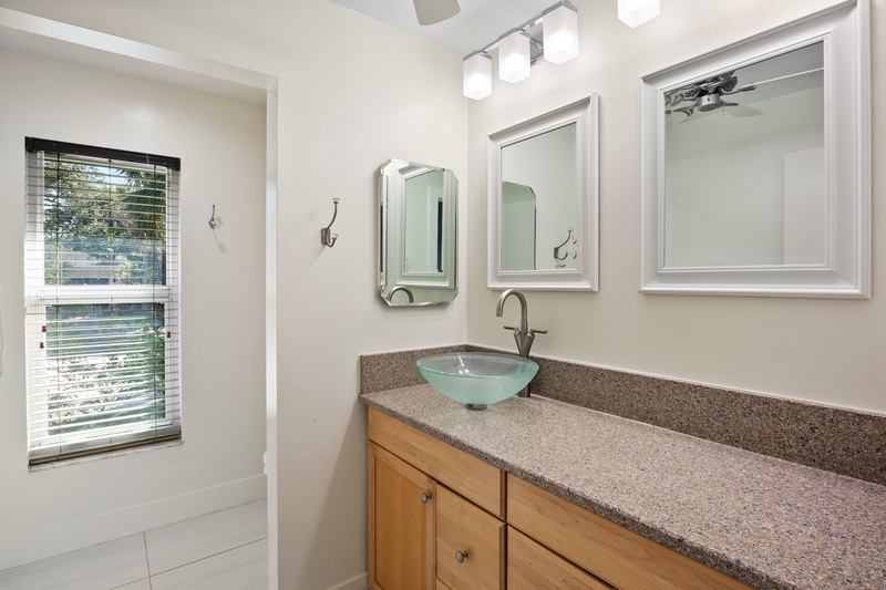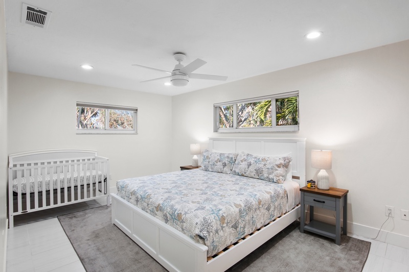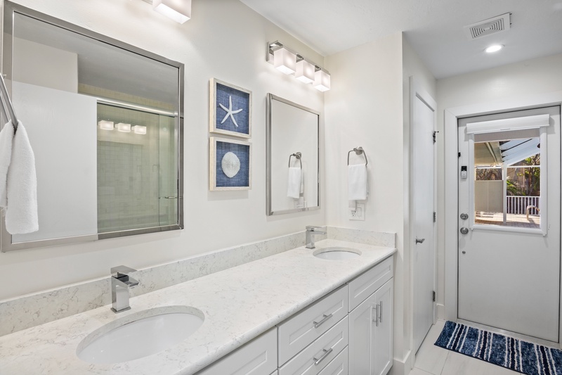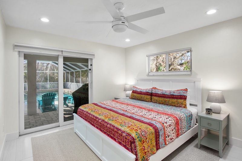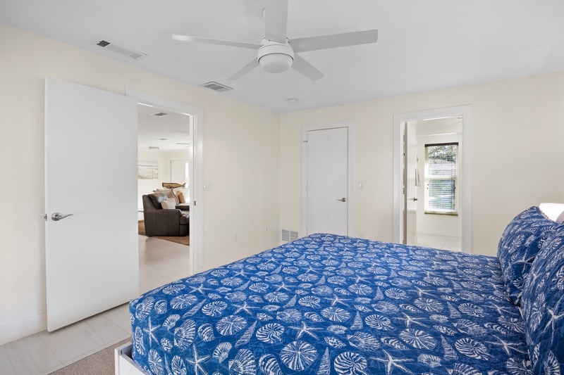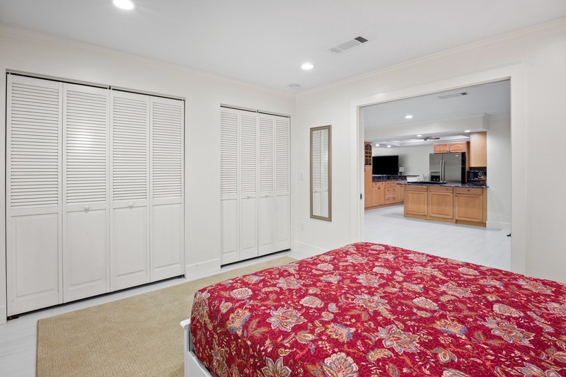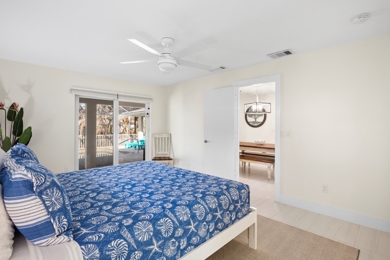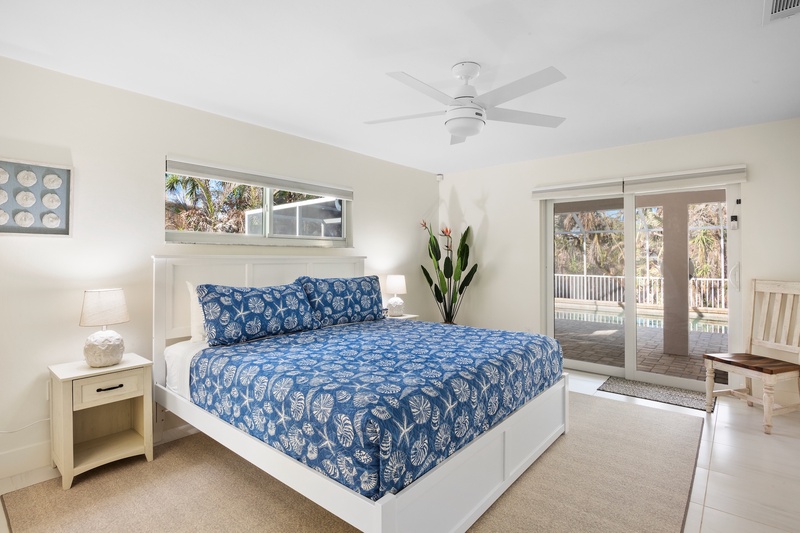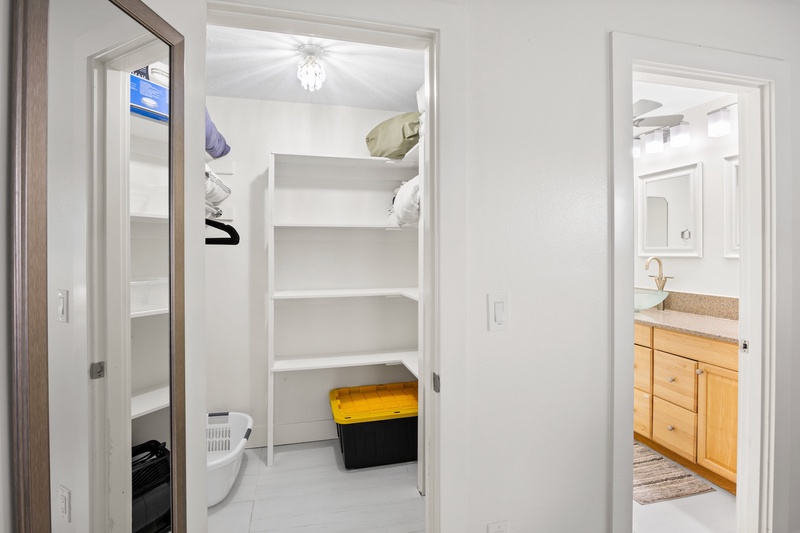 Where better is it to relax than in the primary bedroom, featuring an expansive walk-in closet and an ensuite bathroom with a walk-in shower and a large vanity! There are two King bedrooms and a bonus room with a Queen bed that offers easy access to the hall bath, which has a walk-in shower and pool access. Plus, a washer and dryer are available for guest use, so you can pack light and enjoy your stay worry-free!