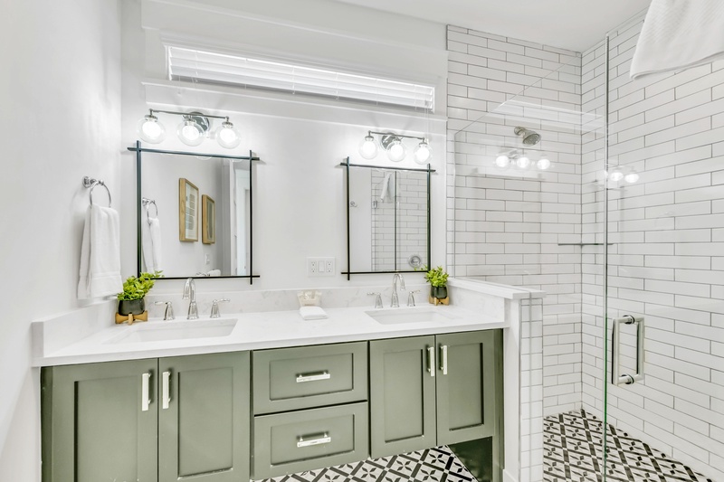 -Primary Bedroom, 3rd floor: King bed, private balcony, and ensuite bathroom with double vanity and walk-in shower